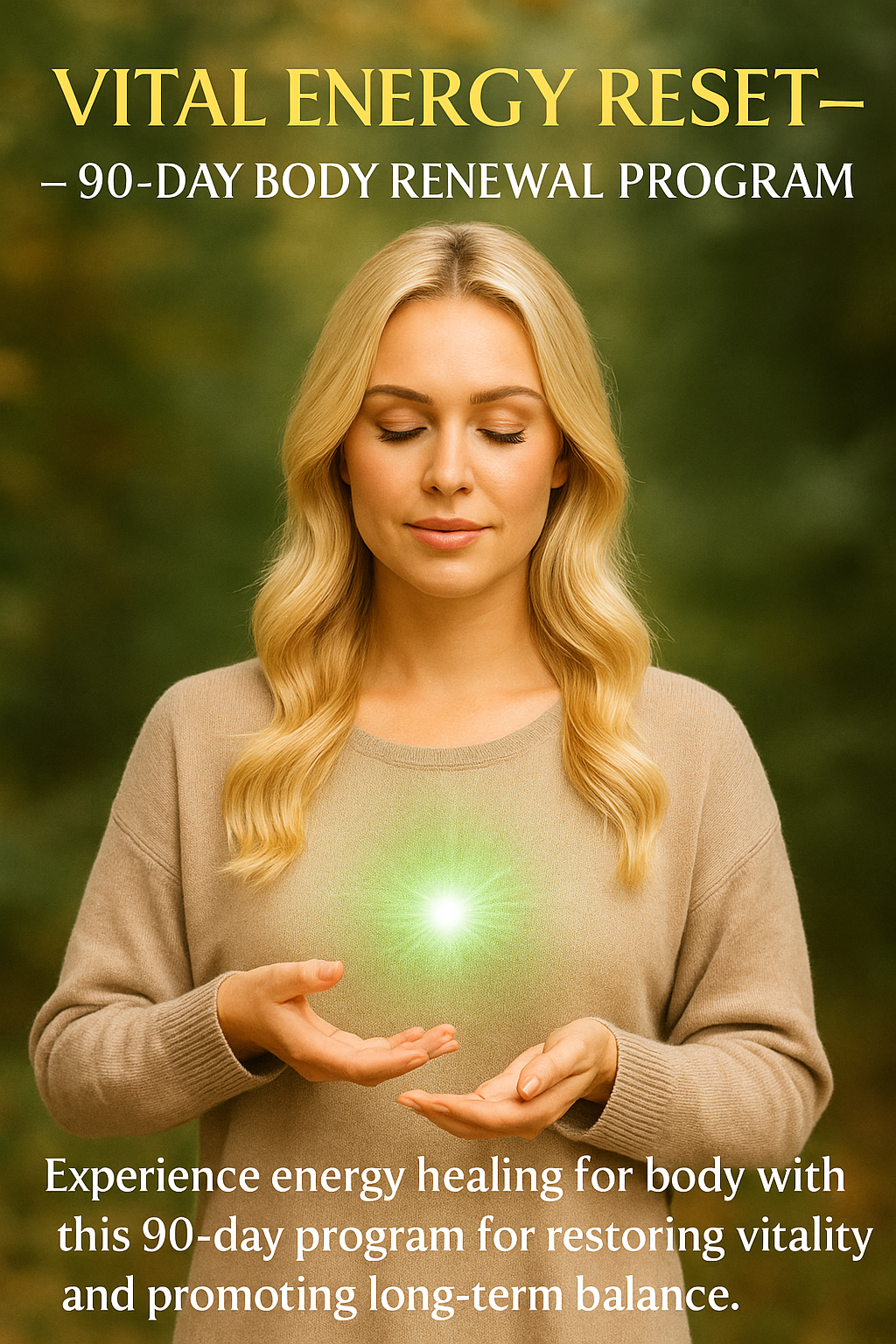 Experience the Vital Energy Reset — a continuous 90-day remote energy program designed to restore your body’s balance, boost vitality, and support long-term well-being.
